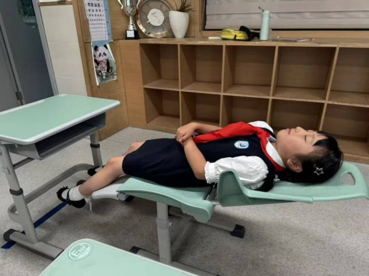 407班班主任张小涵也说,孩子们都挺喜欢这款躺睡椅的,大部分学生能在午休时安然入眠。